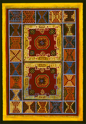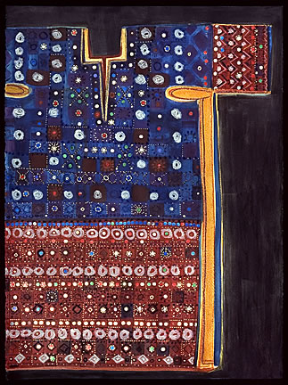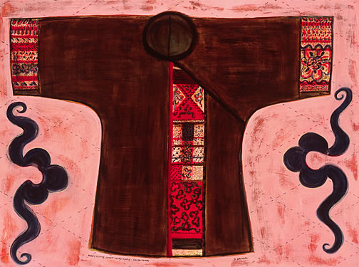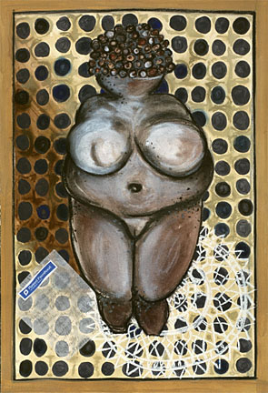 Our art history begins with objects that were made to be used. My 2-D mixed media paintings are an homage to the unknown makers (our ancestors) of textiles, utilitarian and ceremonial objects, and sculpture from many cultures and from thousands of years of art making. In an attempt to portray the innate power and beauty of objects made by hand, I also attempt to acquaint the viewer with traditional cultures that used and still make and use hand-crafted items in their lives. Whenever possible, I carefully note the people, places, and times that the objects were created.